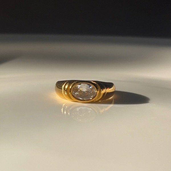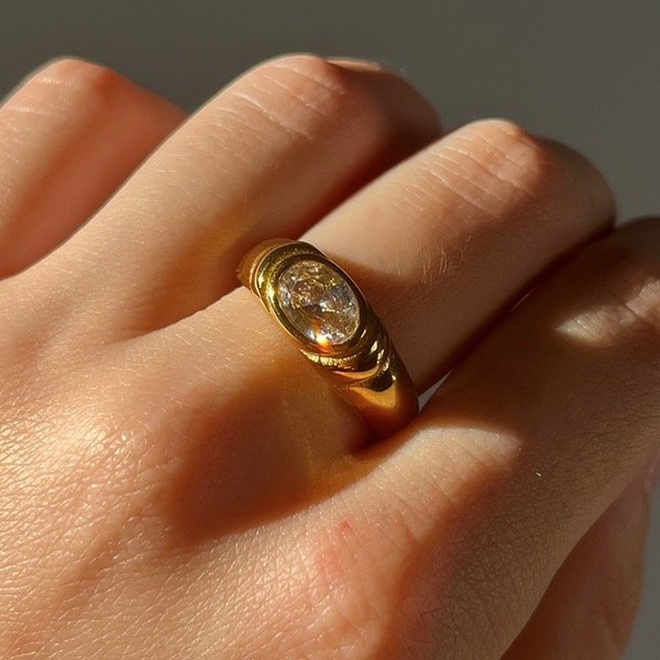 Anillo Acero Quirúrgico Dorado 316L con Strass
