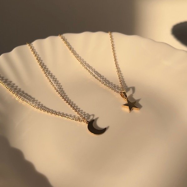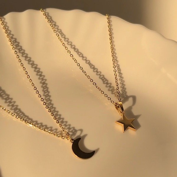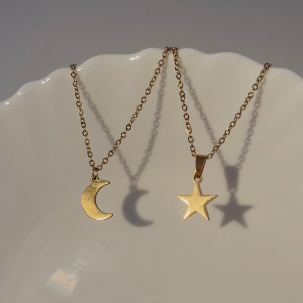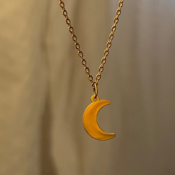 Cadenita de acero dorado + dije de acero dorado 316L con forma de luna