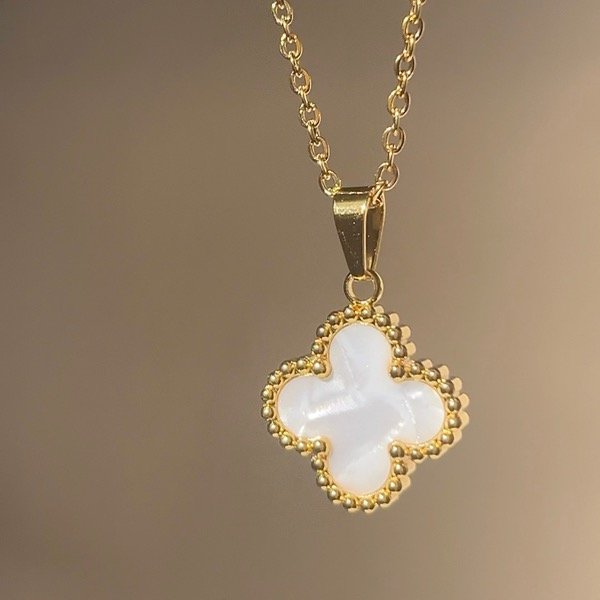 Cadenita de acero dorado + dije nacarado de acero dorado 316L