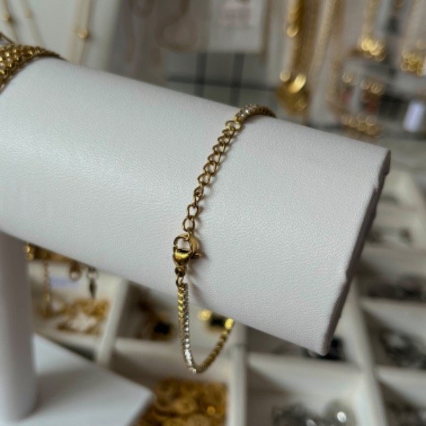 Pulsera de acero quirúrgico dorado con strass